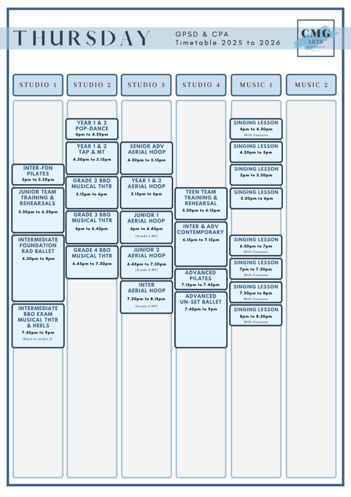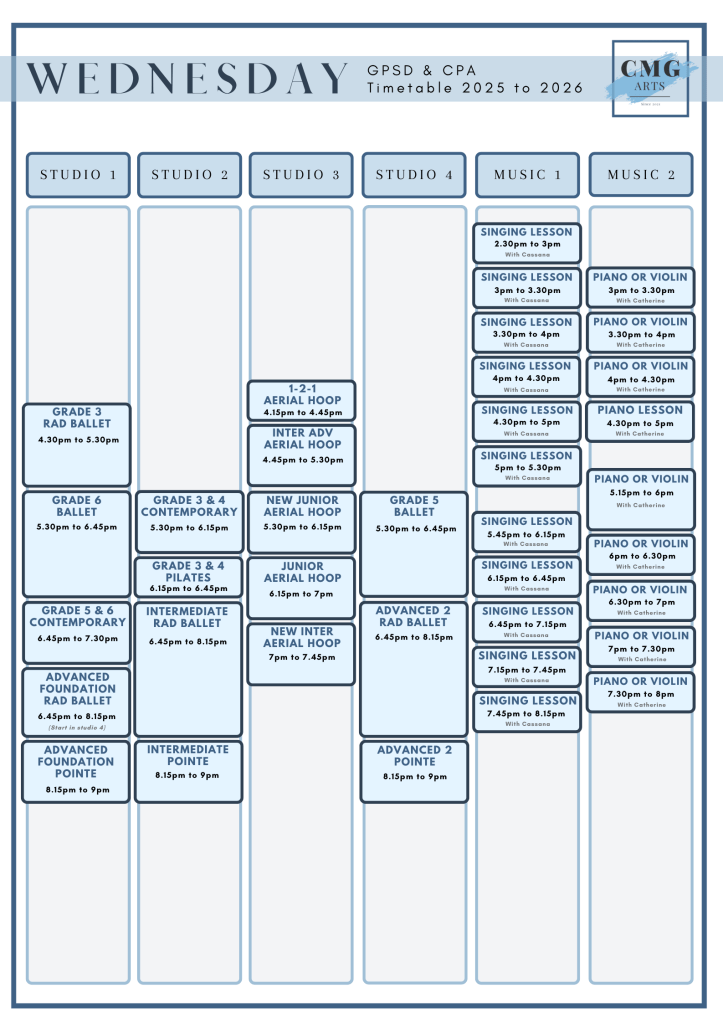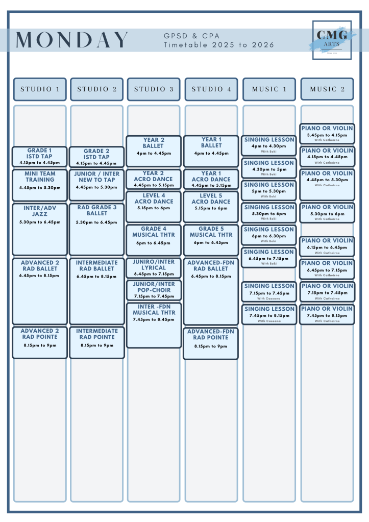 Academic Year 25 to 26 Please see below our new timetable for academic year 2025 to 2026. Term Dates for the year will be released in June 2025. Share this: Share on X (Opens in new window) X Share on Facebook (Opens in new window) Facebook Like Loading...