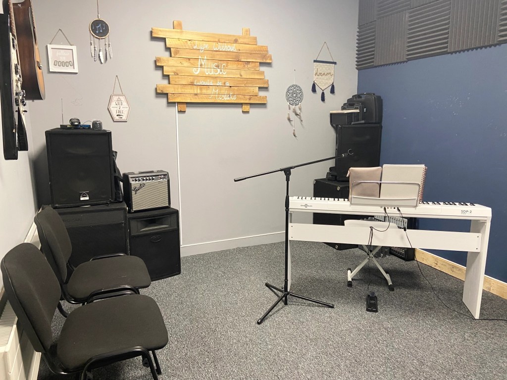Music Room 1 is the larger practice space of the two at approximately 2.8m x 3m. This space costs £10.00 per hour including VAT to hire and includes use of the electric piano. If you have any questions about the studios or hire please email us on info@cmgarts.com and we’ll be happy to help.